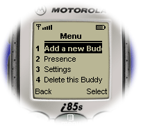 Main Menu Pressing the menu button will show you the available options in the main menu. Add a new Buddy * PresenceSettings Delete this Buddy *