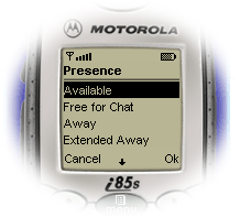 Presence You can select your desired online status: Available, Free for Chat, Away, Extended Away or Do not Disturb. Everyone who have you on its buddy list will be able to see your current status.